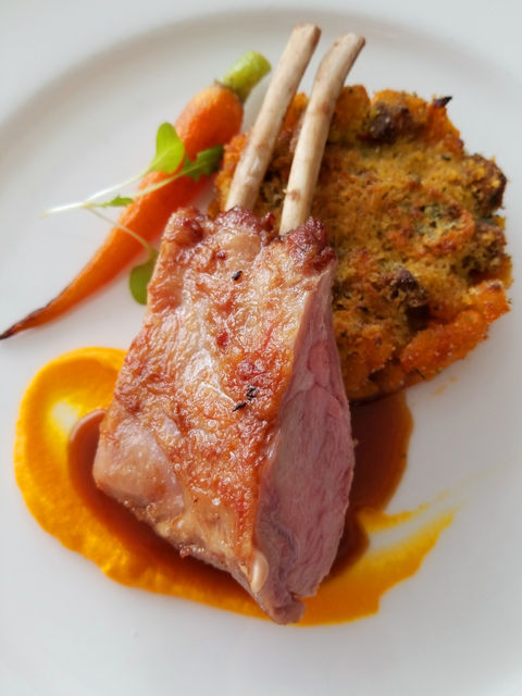 Dalat Brussels sprouts, pumpkin purée, tangerine and Vietnamese green pepper corn sauce